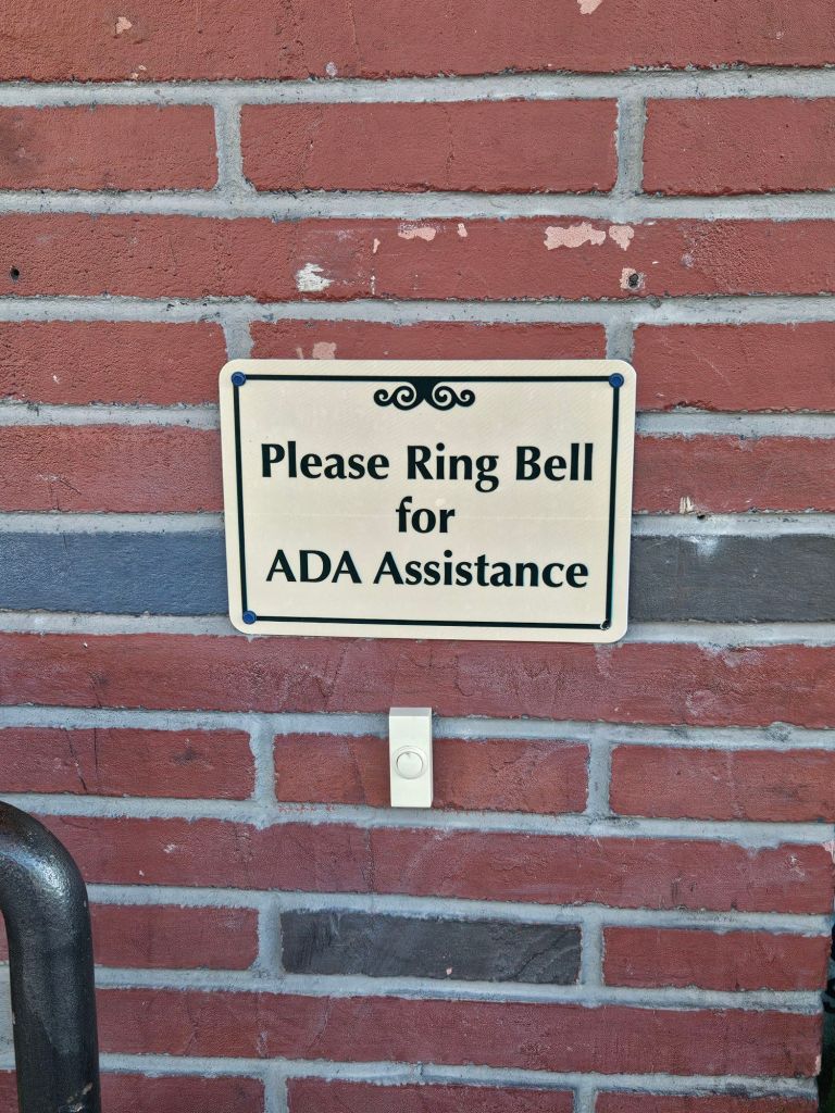 Dunedin has ample parking throughout the town, and our first stop was an Irish pub. We were starving, and luckily, we snagged a handicapped spot right out front. An ADA sign caught my attention. It encourages people to ring the bell if they need assistance to get in. I had never seen that before, and I thought it was a brilliant idea. I kind of wanted to ring it just to see what would happen! Flanagan’s also has courtyard seating and an upstairs, but we weren’t going upstairs. We decided to sit indoors at a booth. It was a perfectly dark pub with soccer playing on the television. The service was great, and it was a perfectly pub-ish pub! The steak bites were delicious, and there were a few menu items I would definitely go back for. Their attention to ADA accommodations and the ready availability of handicapped parking directly out front made coming here a treat.